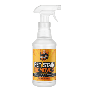 You can buy the exact same product I use in my business. In fact, I make it myself. It’s called Get Off My Carpet Pet Stain Remover (PSR). I buy the raw ingredients, dilute the peroxide to 11% strength, and sell it in 32-ounce spray bottles. It’s good stuff and I ship all over the 48 states. If you want to buy some, click the image below.